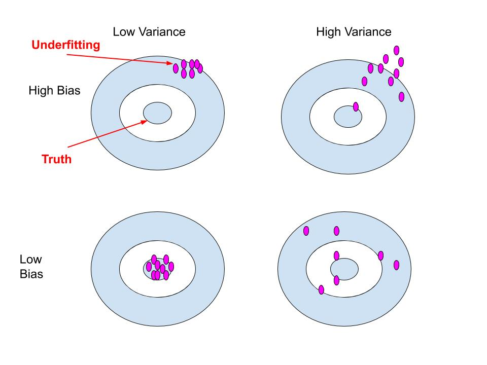 A model with high bias would consistently miss the bullseye by landing far away from the center [1](meaning it makes the same systematic error).