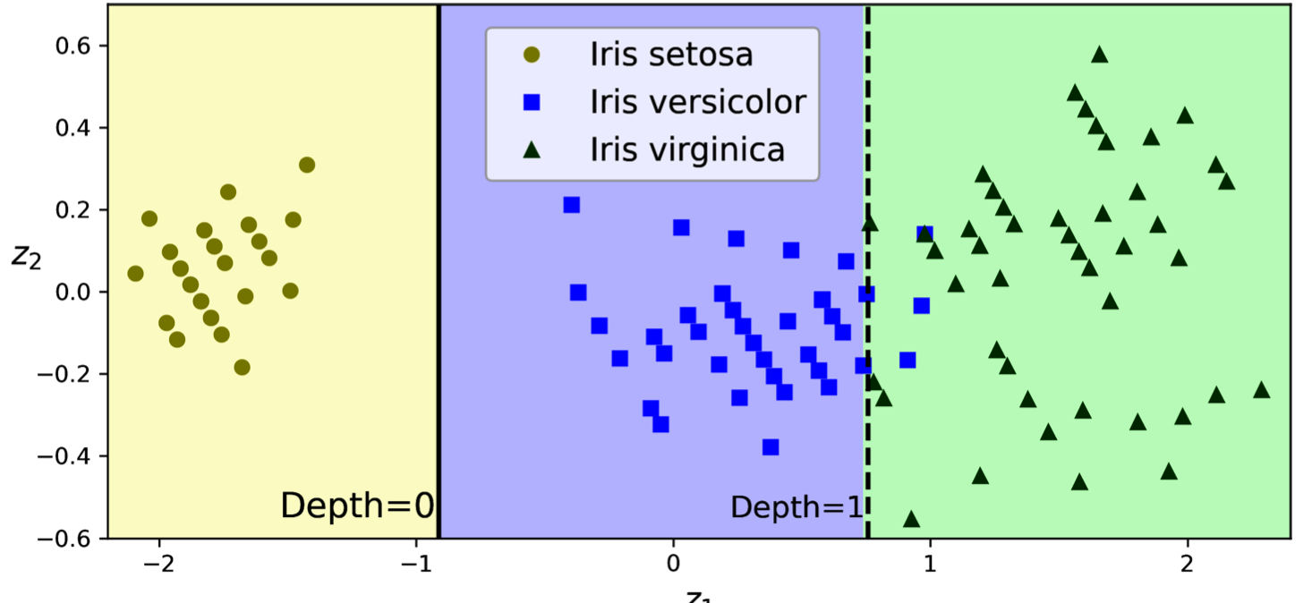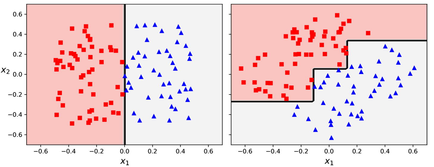 | Sensitive to data orientation | They are sensitive to the orientation of the data and may create overly complex decision boundaries for rotated datasets. One way to mitigate this issue is to apply PCA to rotate the data in a way that reduces the correlation between features. |