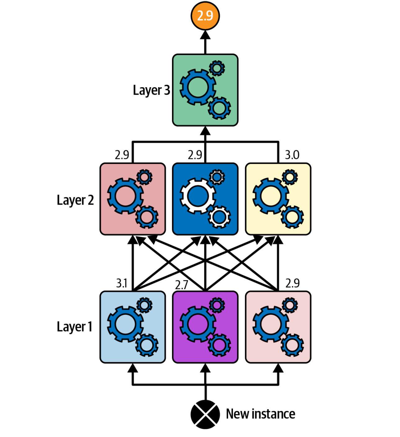 Scikit-Learn offers convenient classes, StackingClassifier and StackingRegressor, for implementing stacking ensembles.[*](Scikit-Learn documentation: Ensemble Methods.) These classes allow you to: