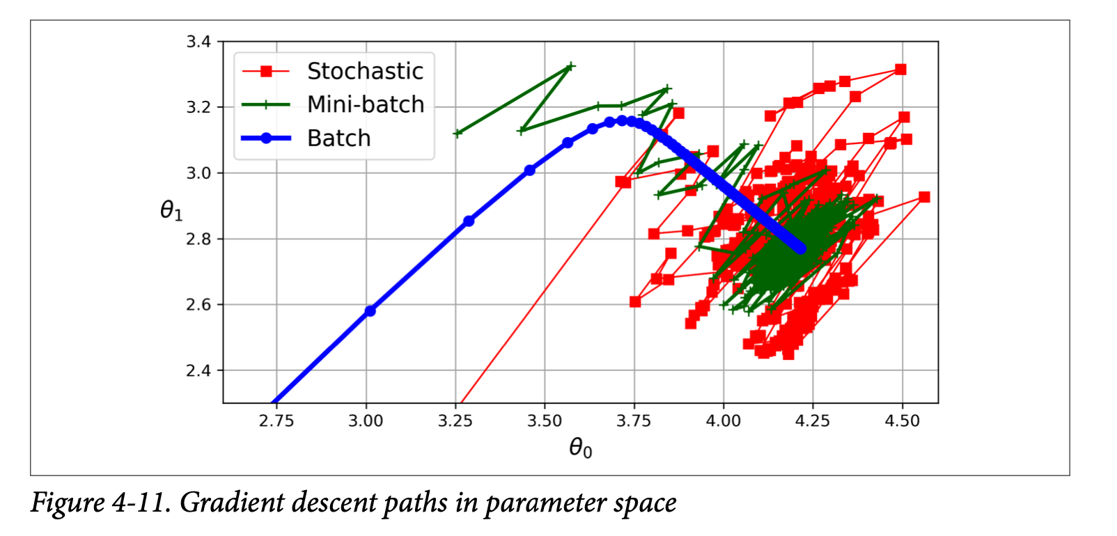 Advantages: Combines the speed of SGD with the stability of batch GD. Can benefit from hardware optimizations (especially on GPUs), making it faster than batch GD.
