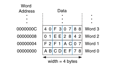 Byte Addressable Memory: In MIPS, memory is byte-addressable, meaning each byte has a unique address. Words are typically 4 bytes long, so the address of a word is four times its word number.