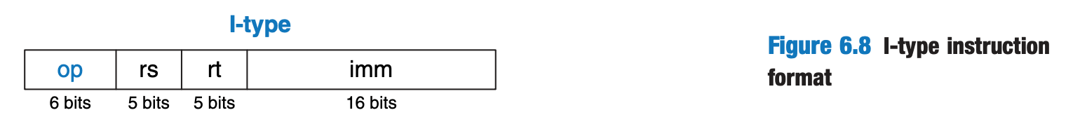 I-type (Immediate-type): Used for operations that involve two registers and an immediate value. The immediate value is a 16-bit constant embedded in the instruction.