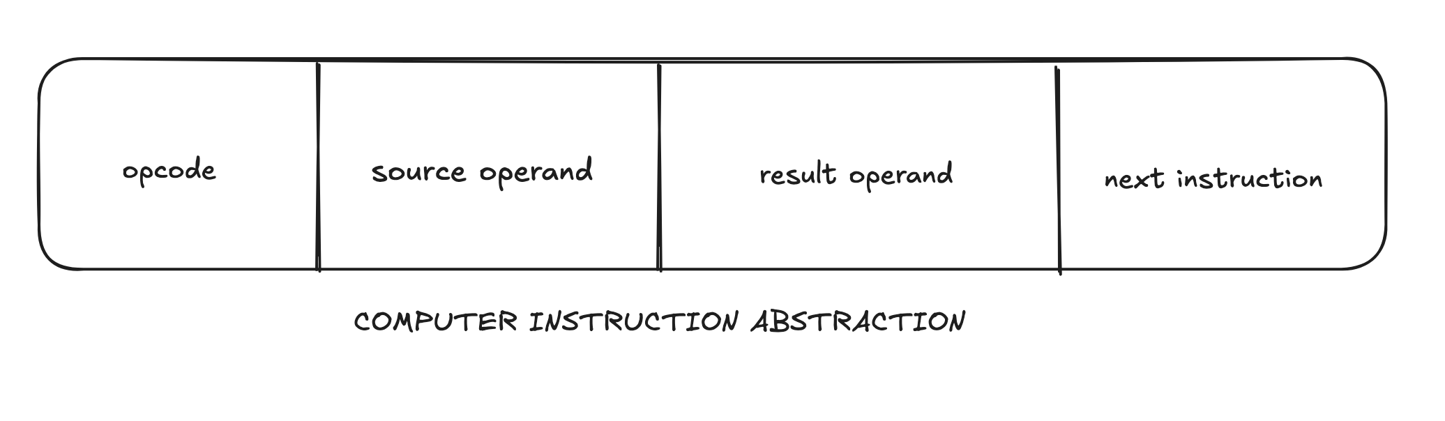 - Opcode (Operation Code): Specifies the operation to be performed (e.g., add, subtract, load, store).