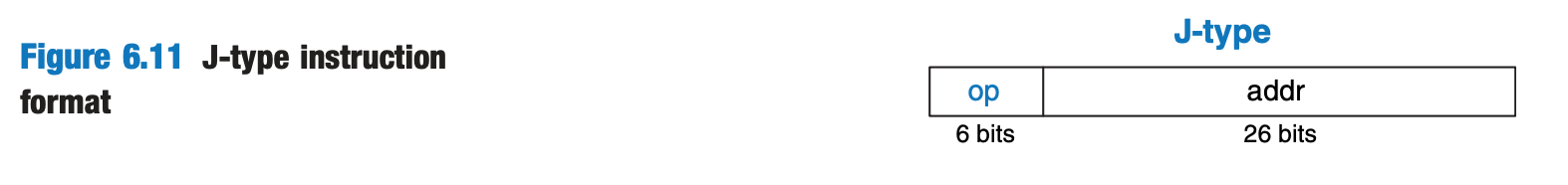 J-type (Jump-type): Used for jump instructions that change the program counter to a new address. The instruction contains a 26-bit address field.