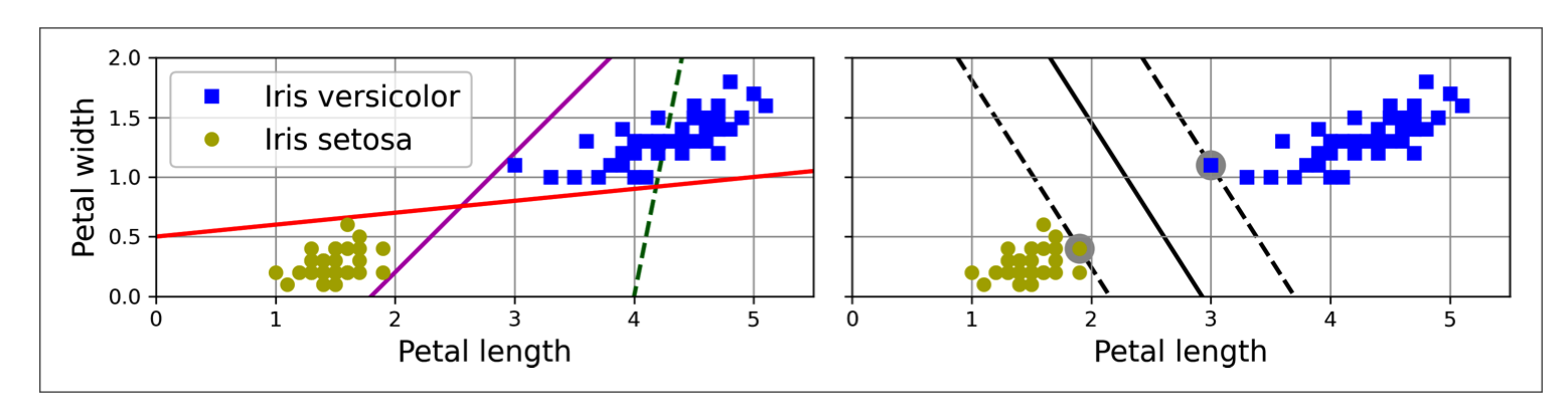 Support Vector Machines (SVMs) are versatile machine learning models capable of handling various tasks, including classification, regression, and novelty detection.[*](Primary reference: Hands-On Machine Learning with Scikit-Learn, Keras, and TensorFlow by Aurélien Géron (3rd edition, 2022).) What makes SVMs particularly powerful is their ability to find optimal decision boundaries by maximizing the margin between classes, making them robust and effective for both linear and nonlinear problems. This margin-maximization principle, combined with the elegant kernel trick for handling nonlinear data, has made SVMs one of the most influential algorithms in machine learning.